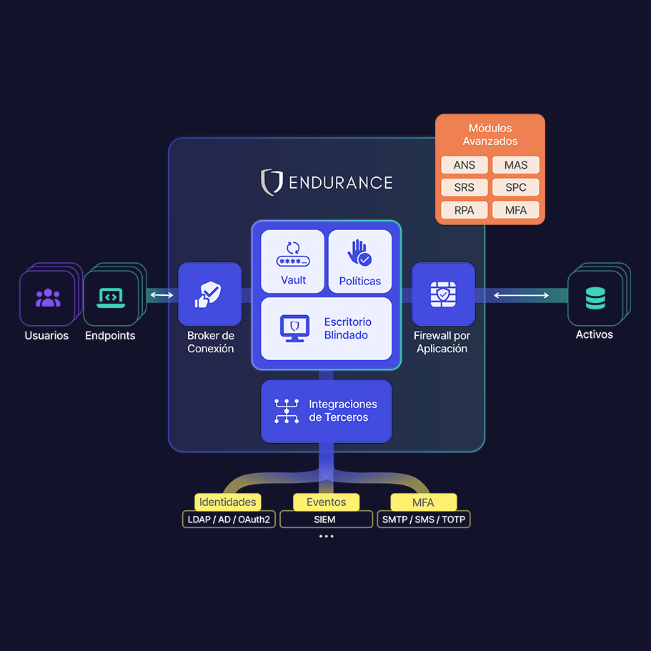 Endurance es una solución de nueva generación que actúa como un enclave, controlando el acceso a los activos críticos y asegurando la protección de la información sensible — en reposo, en tránsito y en uso.