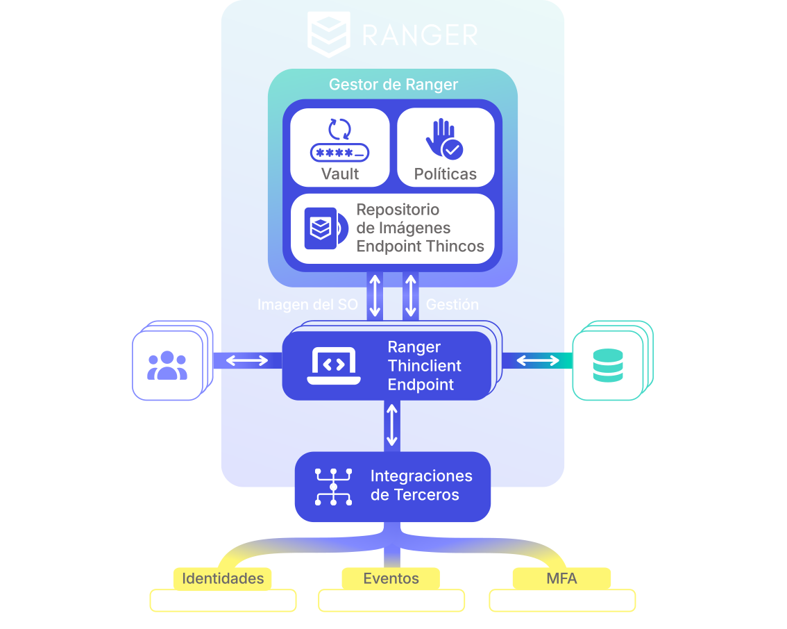 Ranger es una solución basada en servidor con dispositivos Thin Client que ofrece un Espacio de Trabajo Local Blindado (LSW) para acceder de manera segura a activos críticos de IT/OT, con fuerte aislamiento, control centralizado y una experiencia de usuario fluida.